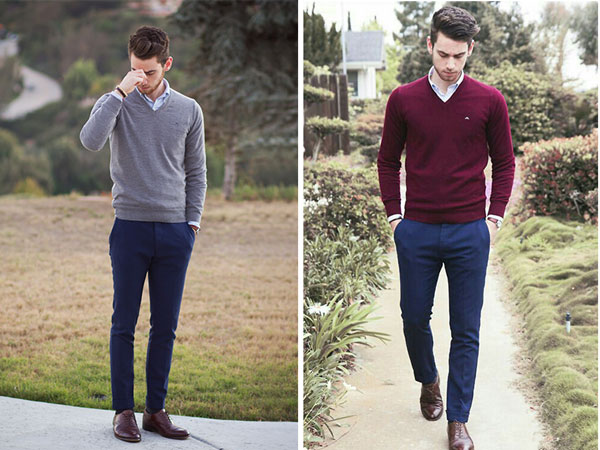 Đây là phong cách được các chàng đặc biệt ưa chuông khi thu sang. Áo len cổ tròn hay cổ tim phối với áo sơ mi cổ đức từ lâu đã là item style đơn giản khi diện cùng giày tây như Oxford hay Derby sẽ mang đến cảm giác thanh lịch của những người đàn ông tri thức.