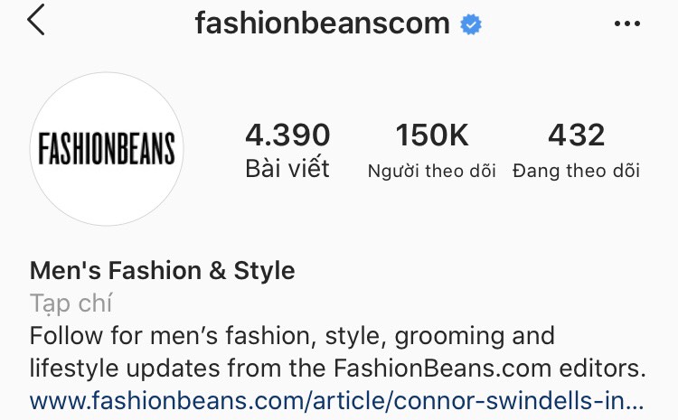 Hiện nay Instagram FashionBeans hiện nay có hơn 150k người theo dõi, với hơn 4 nghìn bài viết được update liên tục đem đến những phong cách thời trang cực kỳ hấp dẫn cho phái mạnh.
