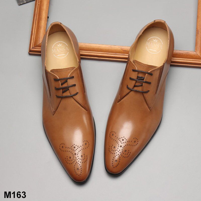 Giày nam công sở M163 độc đáo, ấn tượng ngay từ tên gọi. Đây là một trong số những mẫu giày lười nam được ưa chuộng và bán chạy nhất tại Mansa. Thực chất đây là một mẫu giày lười nhưng lại được thiết kế buộc dây. Với những anh chàng yêu thích phong cách lịch lãm, thời thượng, sang trọng của những mẫu giày tây nam buộc dây nhưng lại không muốn tốn thời gian cho việc buộc và xỏ dây giày, M163 là lựa chọn không thể tuyệt vời hơn